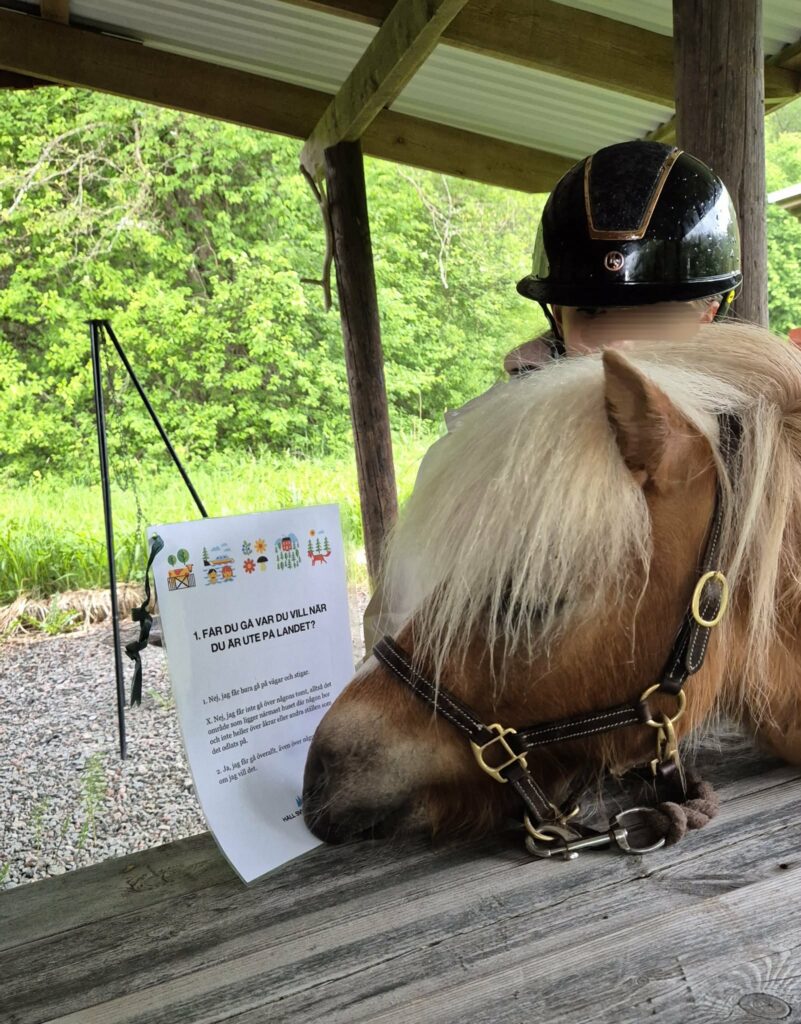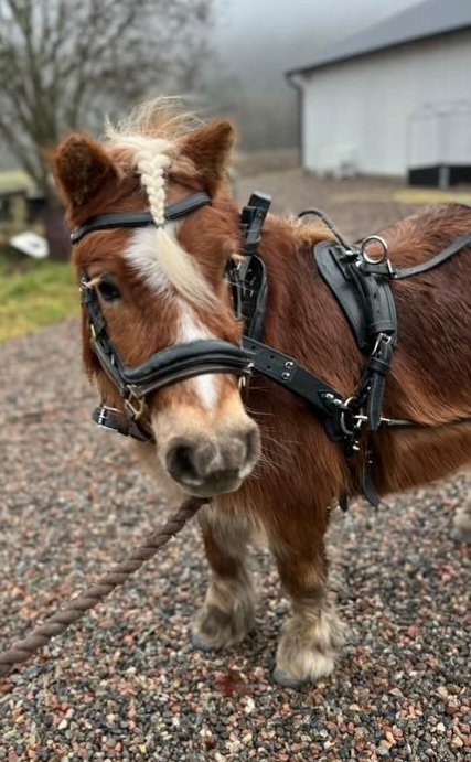 Mumrik är en shetlandsponny, är född 2020 och valack. Han miljötränas på olika sätt för att vänja sig vid varierande situationer. Mumrik ledas samt köras.
