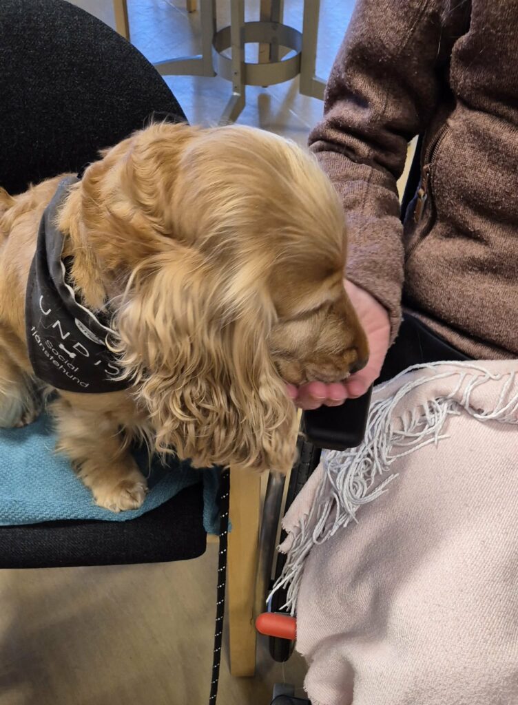 Undis är blandras Cockerpoo, född 2020 och tik. Hon är utbildad besökshund och arbetar bland annat på äldreboenden och med ungdomar. Undis är född hos oss och är en otroligt vänlig hund som älskar godis, promenader, sökövningar och att bli klappad.